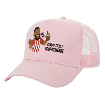 Ροντινέι, "ΠΟΛΥ ΚΟΥΡΑΣΜΕΝΟΣ", Structured Trucker Children's Hat, with Mesh, PINK (100% COTTON, CHILDREN'S, UNISEX, ONE SIZE)