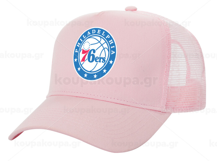Philadelphia 76ers, Structured Trucker Children's Hat, with Mesh, PINK (100% COTTON, CHILDREN'S, UNISEX, ONE SIZE)