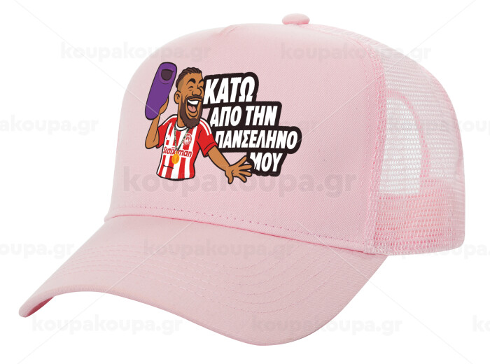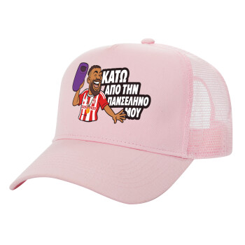 Ροντινέι, "ΚΑΤΩ ΑΠΟ ΤΗΝ ΠΑΝΣΕΛΗΝΟ ΜΟΥ!", Structured Trucker Children's Hat, with Mesh, PINK (100% COTTON, CHILDREN'S, UNISEX, ONE SIZE)