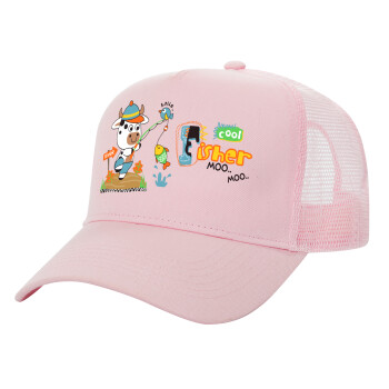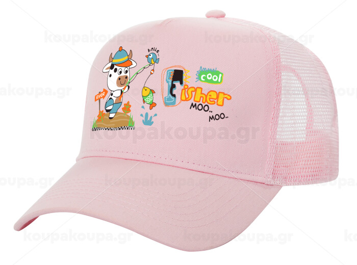Kids Fisherman, Structured Trucker Children's Hat, with Mesh, PINK (100% COTTON, CHILDREN'S, UNISEX, ONE SIZE)