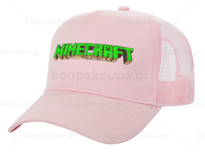 Minecraft logo green, Structured Trucker Children's Hat, with Mesh, PINK (100% COTTON, CHILDREN'S, UNISEX, ONE SIZE)