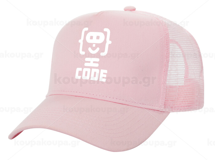 Code Heroes symbol, Structured Trucker Children's Hat, with Mesh, PINK (100% COTTON, CHILDREN'S, UNISEX, ONE SIZE)