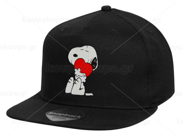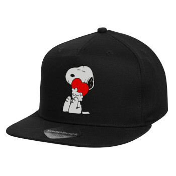 Snoopy, Children's Flat Snapback Hat, Black (100% COTTON, CHILD, UNISEX, ONE SIZE)