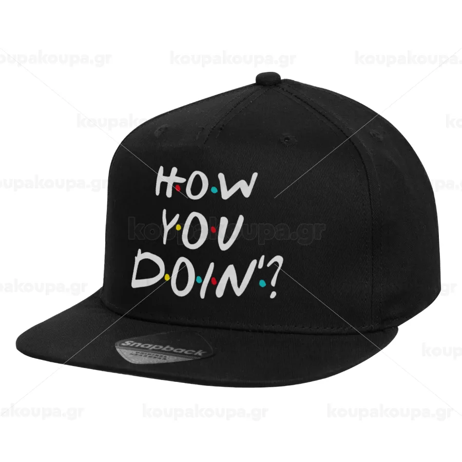 Friends How You Doin'?, Children's Flat Snapback Hat, Black (100% COTTON, CHILD, UNISEX, ONE SIZE)