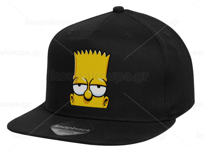 The Simpsons Bart, Children's Flat Snapback Hat, Black (100% COTTON, CHILD, UNISEX, ONE SIZE)