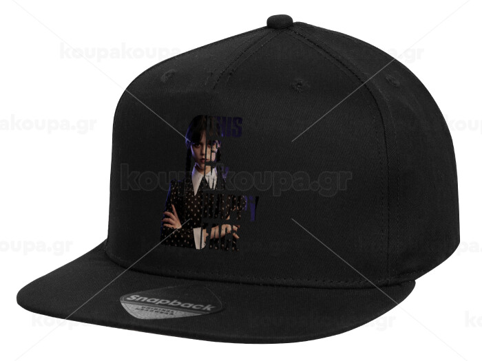 Wednesday, This is my happy face, Children's Flat Snapback Hat, Black (100% COTTON, CHILD, UNISEX, ONE SIZE)