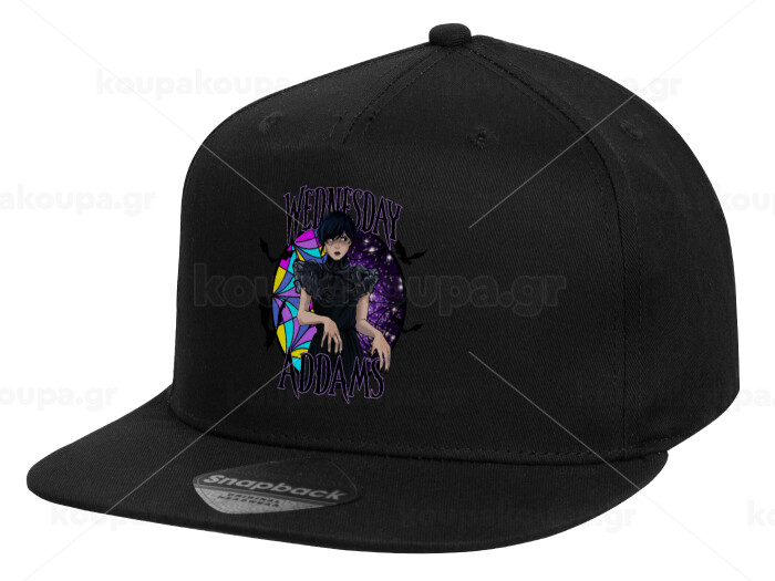 Wednesday Jenna Ortega, Children's Flat Snapback Hat, Black (100% COTTON, CHILD, UNISEX, ONE SIZE)