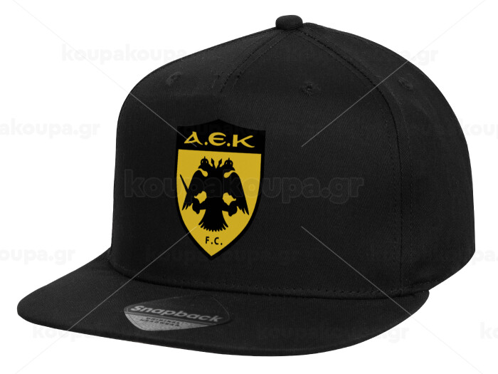ΑΕΚ, Children's Flat Snapback Hat, Black (100% COTTON, CHILD, UNISEX, ONE SIZE)
