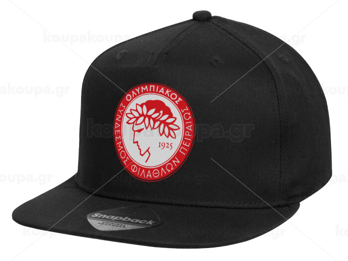 Ολυμπιακός, Children's Flat Snapback Hat, Black (100% COTTON, CHILD, UNISEX, ONE SIZE)