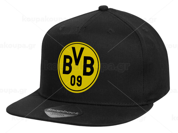 BVB Dortmund, Children's Flat Snapback Hat, Black (100% COTTON, CHILD, UNISEX, ONE SIZE)