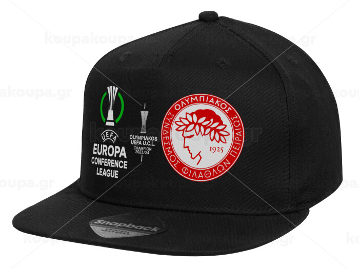 Olympiacos UEFA Europa Conference League Champion 2023/24, Children's Flat Snapback Hat, Black (100% COTTON, CHILD, UNISEX, ONE SIZE)
