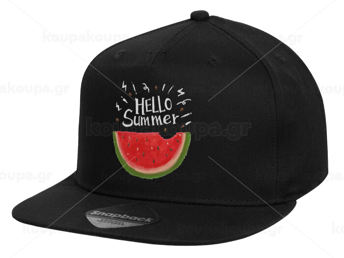 Summer Watermelon, Children's Flat Snapback Hat, Black (100% COTTON, CHILD, UNISEX, ONE SIZE)