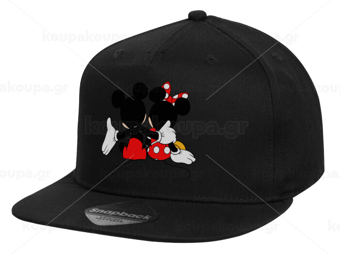 mickey and minnie hags, Children's Flat Snapback Hat, Black (100% COTTON, CHILD, UNISEX, ONE SIZE)