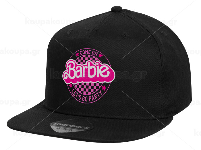 Come On Barbie Lets Go Party , Children's Flat Snapback Hat, Black (100% COTTON, CHILD, UNISEX, ONE SIZE)