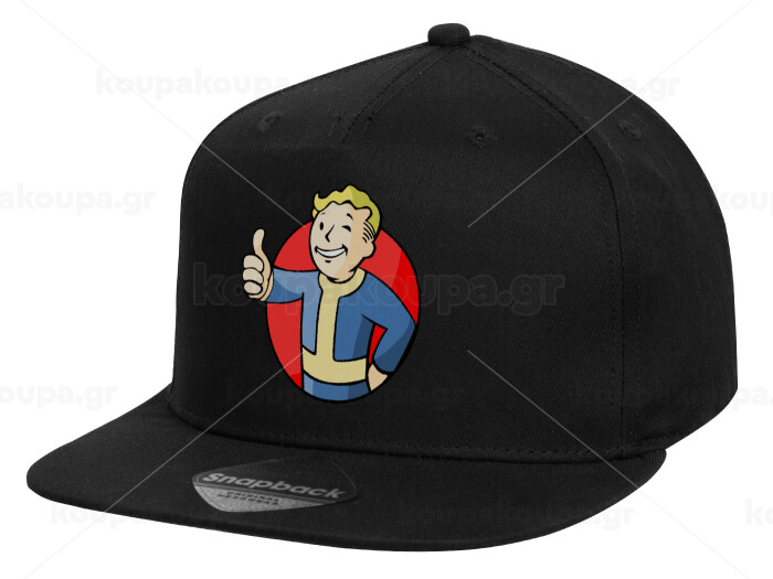 Fallout Vault Boy, Children's Flat Snapback Hat, Black (100% COTTON, CHILD, UNISEX, ONE SIZE)