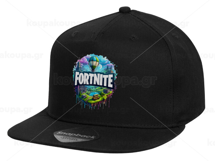 Fortnite land, Children's Flat Snapback Hat, Black (100% COTTON, CHILD, UNISEX, ONE SIZE)