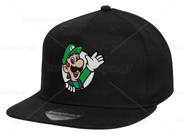 Super mario Luigi win, Children's Flat Snapback Hat, Black (100% COTTON, CHILD, UNISEX, ONE SIZE)