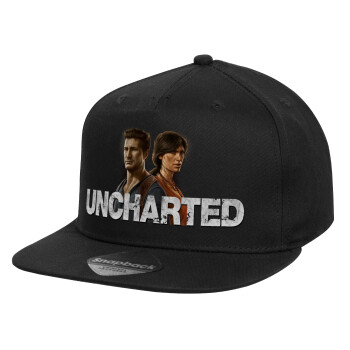 Uncharted, Children's Flat Snapback Hat, Black (100% COTTON, CHILD, UNISEX, ONE SIZE)