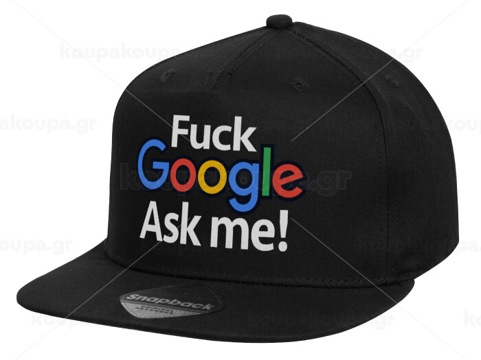 Fuck Google, Ask me!, Children's Flat Snapback Hat, Black (100% COTTON, CHILD, UNISEX, ONE SIZE)