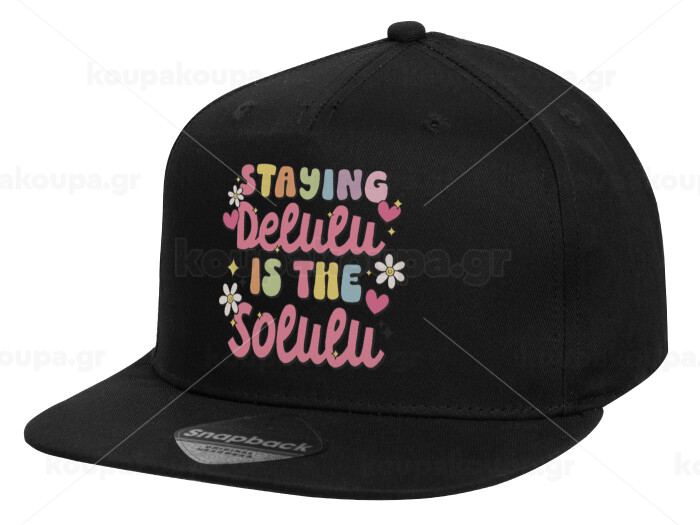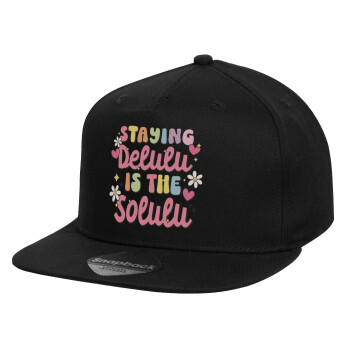 Delulu, Children's Flat Snapback Hat, Black (100% COTTON, CHILD, UNISEX, ONE SIZE)