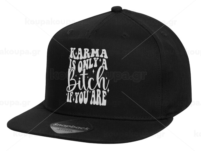 Karma is Only A Bitch if You Are, Children's Flat Snapback Hat, Black (100% COTTON, CHILD, UNISEX, ONE SIZE)