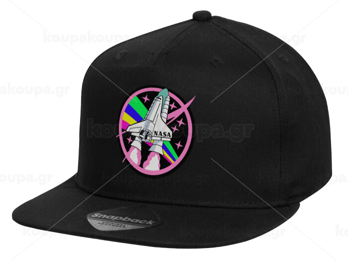 NASA pink, Children's Flat Snapback Hat, Black (100% COTTON, CHILD, UNISEX, ONE SIZE)