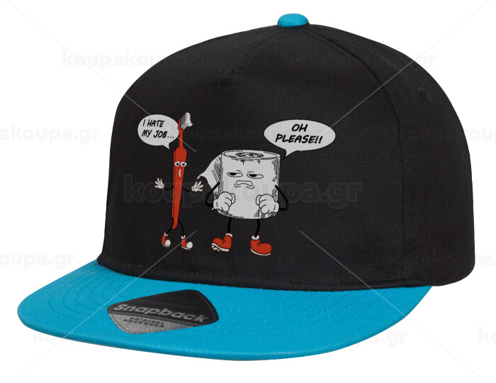 I hate my job, Child's Flat Snapback Hat, Black/Blue (100% COTTON, CHILD, UNISEX, ONE SIZE)