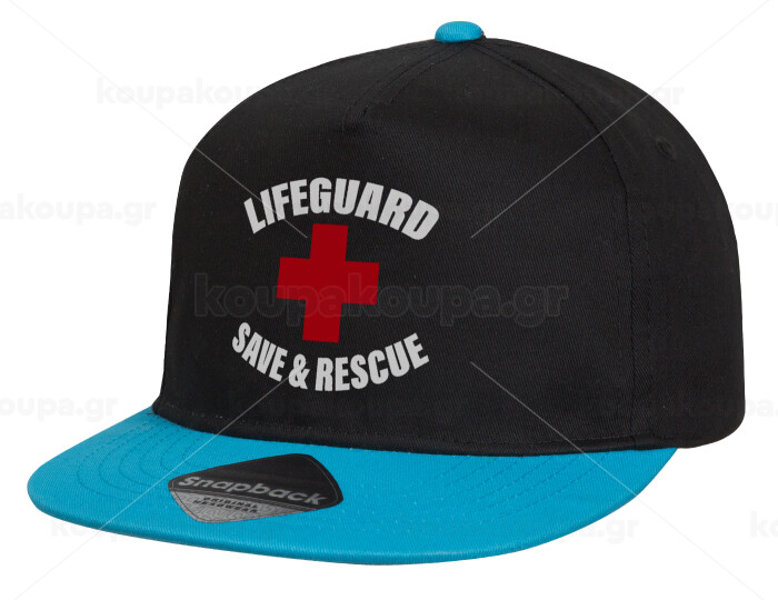 Lifeguard Save & Rescue, Child's Flat Snapback Hat, Black/Blue (100% COTTON, CHILD, UNISEX, ONE SIZE)