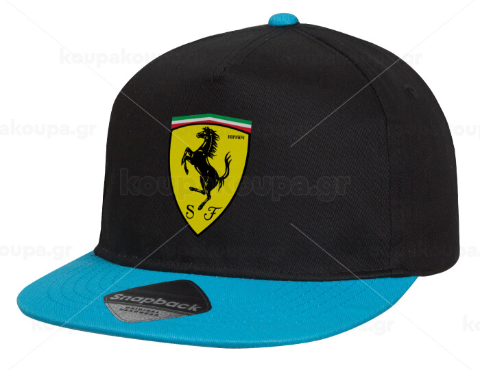 Ferrari, Child's Flat Snapback Hat, Black/Blue (100% COTTON, CHILD, UNISEX, ONE SIZE)
