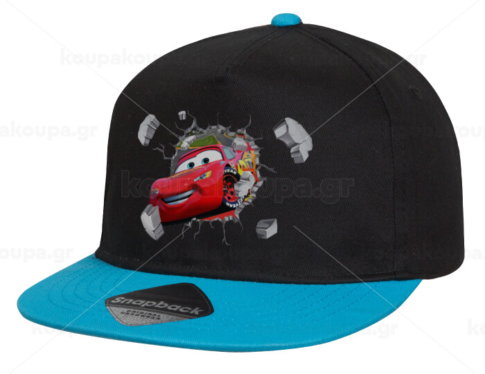 Brick McQueen, Child's Flat Snapback Hat, Black/Blue (100% COTTON, CHILD, UNISEX, ONE SIZE)