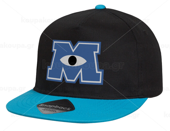 Monster inc, Child's Flat Snapback Hat, Black/Blue (100% COTTON, CHILD, UNISEX, ONE SIZE)