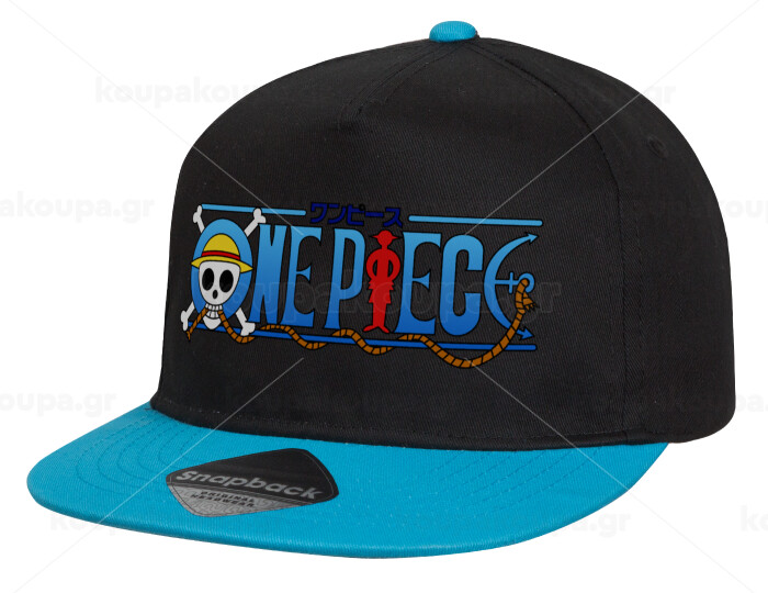 Onepiece logo, Child's Flat Snapback Hat, Black/Blue (100% COTTON, CHILD, UNISEX, ONE SIZE)