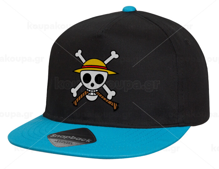 Onepiece skull, Child's Flat Snapback Hat, Black/Blue (100% COTTON, CHILD, UNISEX, ONE SIZE)