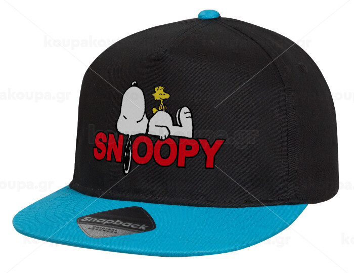 Snoopy sleep, Child's Flat Snapback Hat, Black/Blue (100% COTTON, CHILD, UNISEX, ONE SIZE)