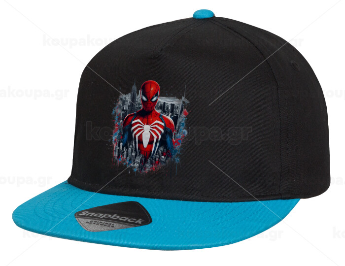Spiderman City, Child's Flat Snapback Hat, Black/Blue (100% COTTON, CHILD, UNISEX, ONE SIZE)