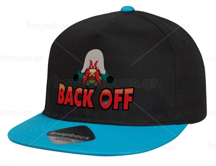 Yosemite Sam Back OFF, Child's Flat Snapback Hat, Black/Blue (100% COTTON, CHILD, UNISEX, ONE SIZE)