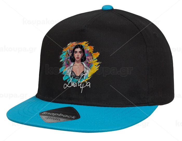 Dua lipa, Child's Flat Snapback Hat, Black/Blue (100% COTTON, CHILD, UNISEX, ONE SIZE)