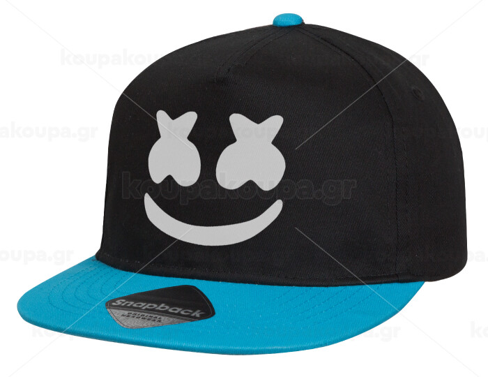 Marshmello, Child's Flat Snapback Hat, Black/Blue (100% COTTON, CHILD, UNISEX, ONE SIZE)