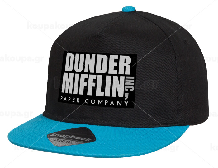 Dunder Mifflin, Inc Paper Company, Child's Flat Snapback Hat, Black/Blue (100% COTTON, CHILD, UNISEX, ONE SIZE)