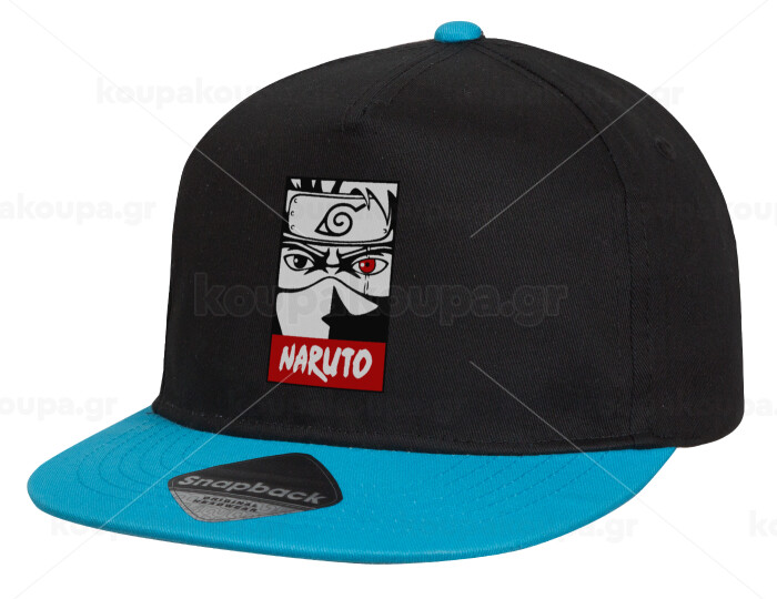 Naruto anime, Child's Flat Snapback Hat, Black/Blue (100% COTTON, CHILD, UNISEX, ONE SIZE)