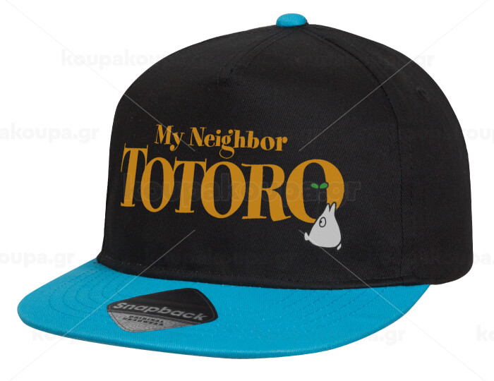 Totoro and Cat, Child's Flat Snapback Hat, Black/Blue (100% COTTON, CHILD, UNISEX, ONE SIZE)