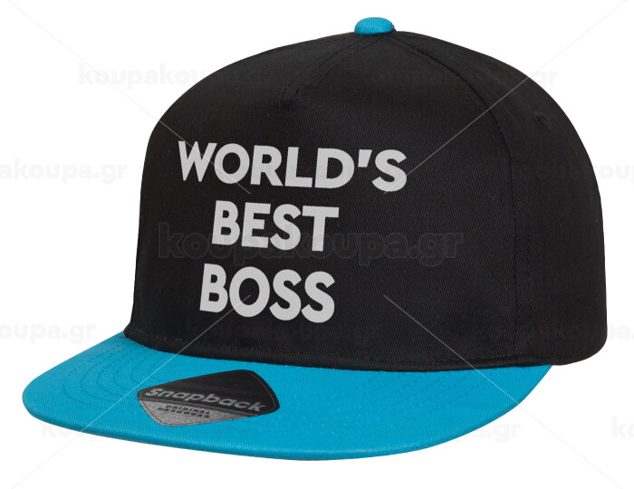 World's best boss, Child's Flat Snapback Hat, Black/Blue (100% COTTON, CHILD, UNISEX, ONE SIZE)