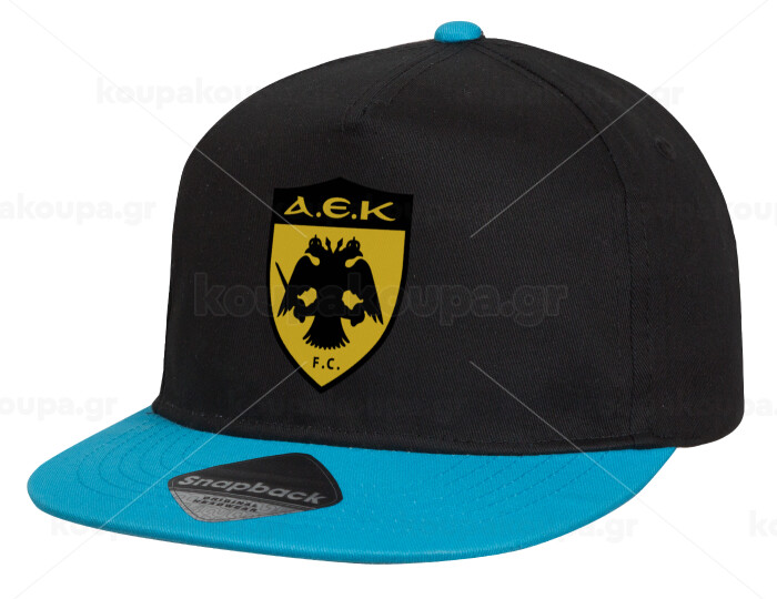 ΑΕΚ, Child's Flat Snapback Hat, Black/Blue (100% COTTON, CHILD, UNISEX, ONE SIZE)