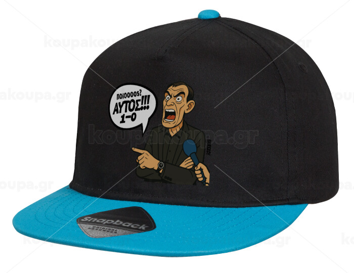 Μπαρτζό, Ποιος? Αυτός!!! 1-0, Child's Flat Snapback Hat, Black/Blue (100% COTTON, CHILD, UNISEX, ONE SIZE)