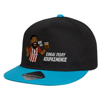 Ροντινέι, "ΠΟΛΥ ΚΟΥΡΑΣΜΕΝΟΣ", Child's Flat Snapback Hat, Black/Blue (100% COTTON, CHILD, UNISEX, ONE SIZE)
