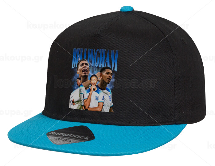 Jude Bellingham, Child's Flat Snapback Hat, Black/Blue (100% COTTON, CHILD, UNISEX, ONE SIZE)