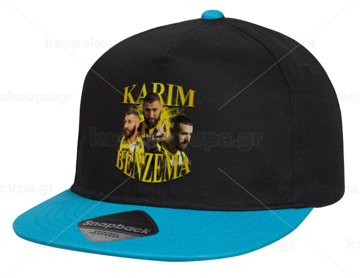 Karim Benzema, Child's Flat Snapback Hat, Black/Blue (100% COTTON, CHILD, UNISEX, ONE SIZE)