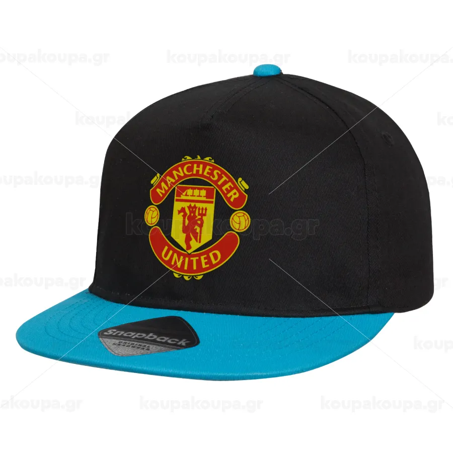 Manchester United F.C., Child's Flat Snapback Hat, Black/Blue (100% COTTON, CHILD, UNISEX, ONE SIZE)