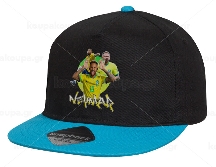 Neymar JR, Child's Flat Snapback Hat, Black/Blue (100% COTTON, CHILD, UNISEX, ONE SIZE)