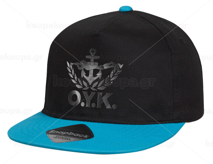 Ο.Υ.Κ., Child's Flat Snapback Hat, Black/Blue (100% COTTON, CHILD, UNISEX, ONE SIZE)